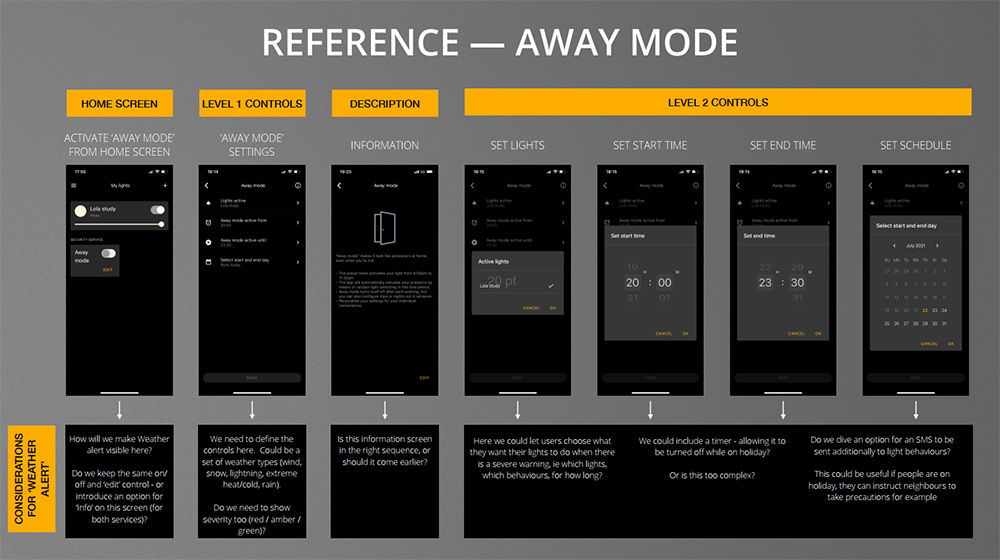 I made the feature more customizable when I identified different contexts of use. The feature can now be turned on spontaneously when you leave the house or set up for a scheduled absence.